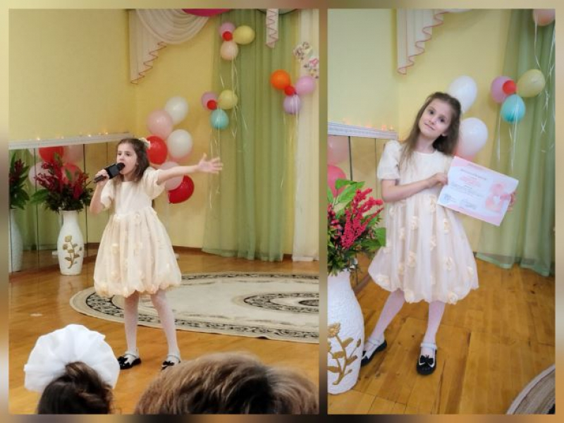 Наш детский сад представляла Трофимова Таисия, воспитанница группы № 6 «Почемучки» (педагог – музыкальный руководитель Денисова Ю.А.). Искренне, нежно и трогательно в ее исполнении звучала песня Т.Петровой «Нет на свете мамочки милее», не оставив равнодушными слушателей в зале и, конечно, членов компетентного жюри.